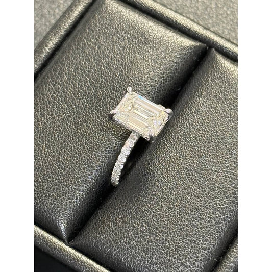 14k White Gold 3.03 Emerald Cut Lab Grown Diamond E Color VS1 Clarity 3.53 Total Weight IGI