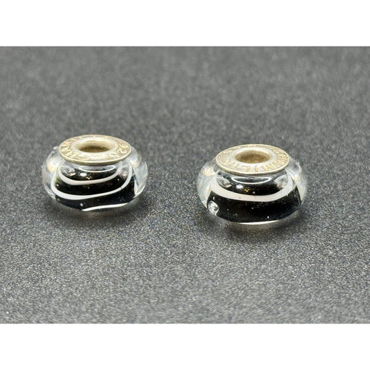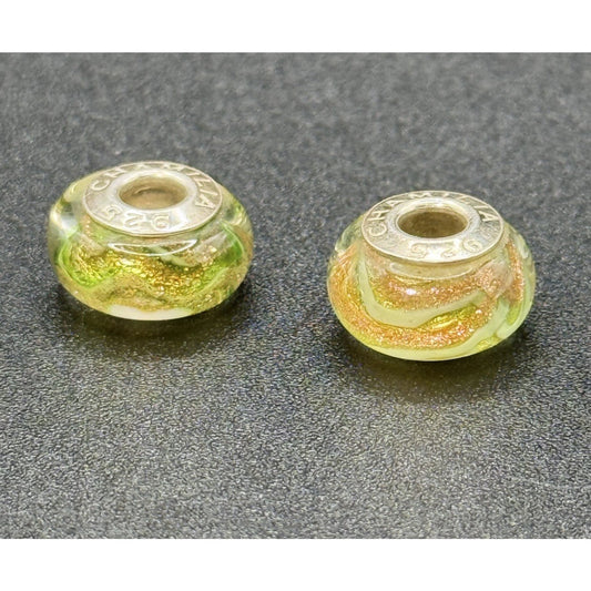 (2) Chamilia Sterling Silver Shimmering Swirl Murano Glass Charm P19
