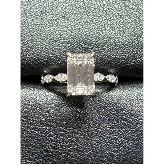 14k White Gold 3.03 Emerald Cut Lab Grown Diamond E Color VS1 Clarity 3.53 Total Weight IGI