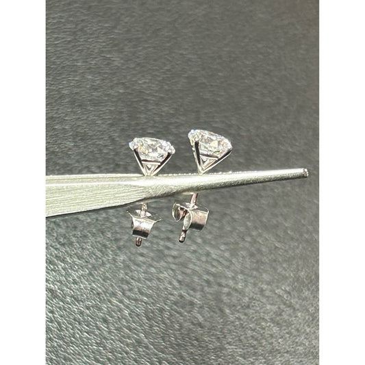 14k White Gold 2.18 Total Weight Round Brilliant Cut Lab Grown Diamond Studs E Color VS1 Clarity