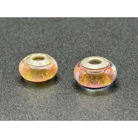 (2) Chamilia Sterling Silver Pink Coral Murano Glass Charm P20