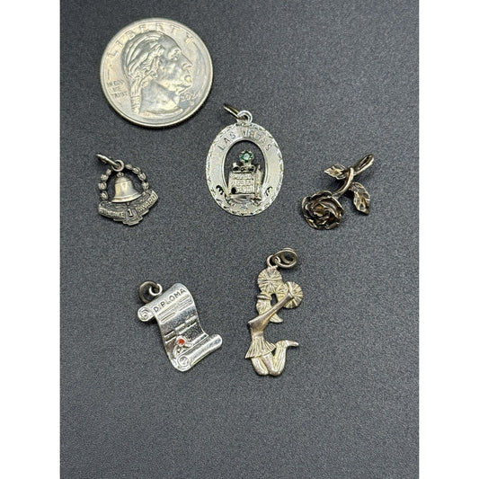 (5) Vintage Sterling Silver Charm Lot Vegas Cheer Diploma P3