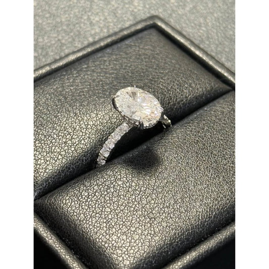 14k White Gold 3.08 Carat Oval Lab Grown Diamond Ring E Color VS1 Clarity