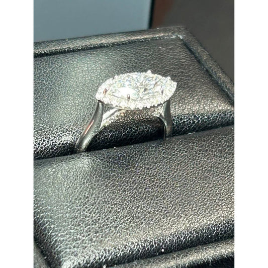 14k White Gold 3.01 Carat Lab grown Diamond Ring Secret Halo Marquise sides