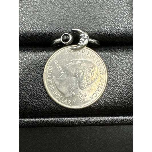 New Condition Sterling Silver Onyx Crescent Moon Ring 925 Size 7