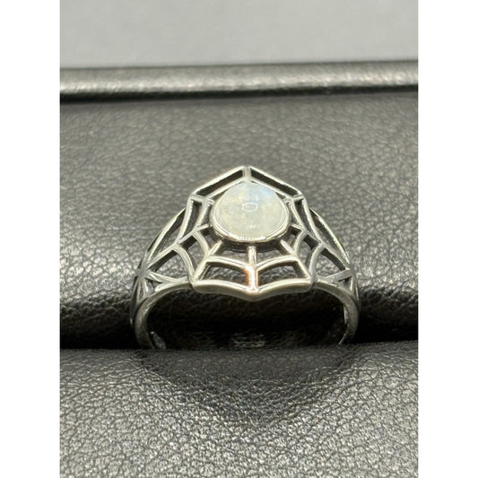 New Condition Sterling Silver Moonstone Spiderweb Ring Size 6