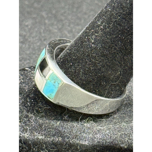 New Condition Sterling Silver Multigemstone Band Ring Size 10.00 Turquoise