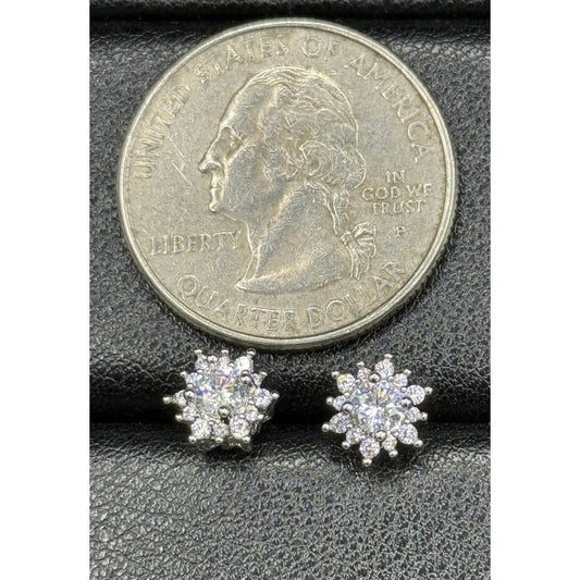 New Condition Sterling Silver Moissanite Starburst Stud Earrings 925