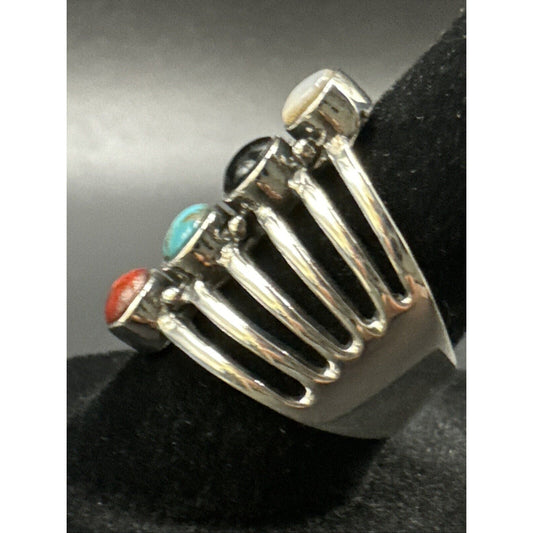 New Condition Sterling Silver Multi Turquoise Chief Ring Size 7.75