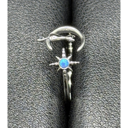 New Condition Sterling Silver Moon Cat Lab Opal Ring Size 7.00 Adjustable