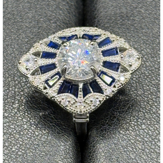 New Condition Sterling Silver Moissanite Art Deco Ring Size 7.00 GRA Q23