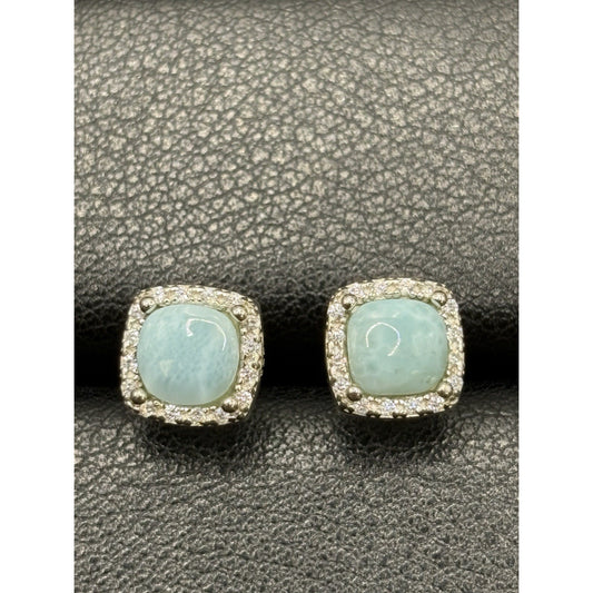 New Condition Sterling Silver Larimar Cubic Zirconia Stud Earrings