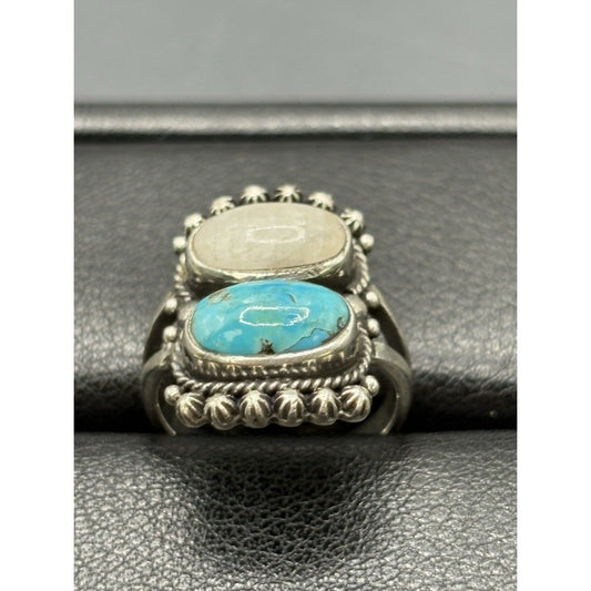 New Condition Sterling Silver Moonstone Turquoise Ring Size 10 925
