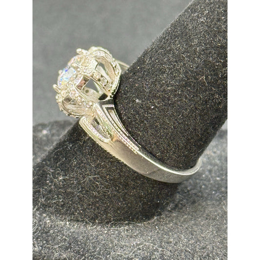 New Condition Sterling Silver Moissanite Engagement Ring Size 7.00 GRA