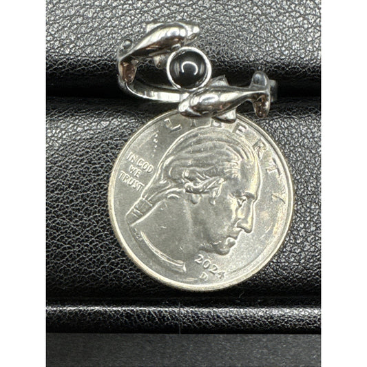 New Condition Sterling Silver Onyx Double Dolphin Ring 925 Size 7