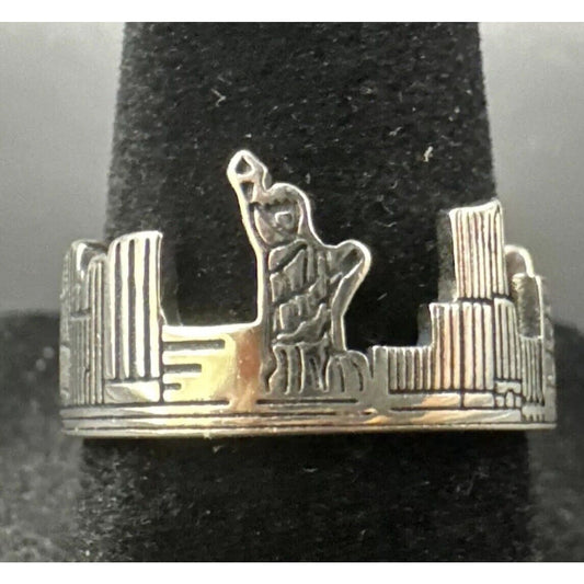 New Condition Sterling Silver New York Skyline Ring 925 Size 7.00