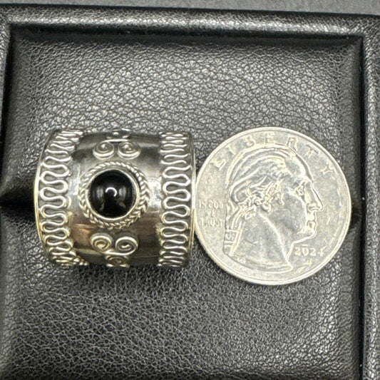 New Condition Sterling Silver Onyx Bali Style Band Ring 925 Size 6.5