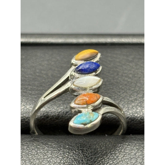 New Condition Sterling Silver Multi Gemstone Bypass Ring Size 10