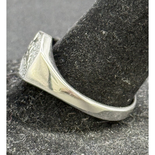 New Condition Sterling Silver Onyx Aztec Eagle Design Signet Size 9.00