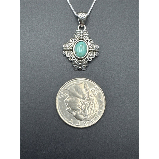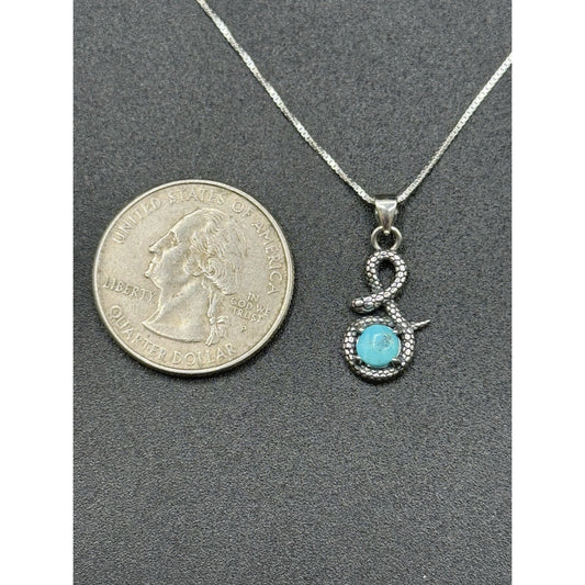 18” New Condition Sterling Silver Dainty Turquoise Snake Pendant Necklace 925