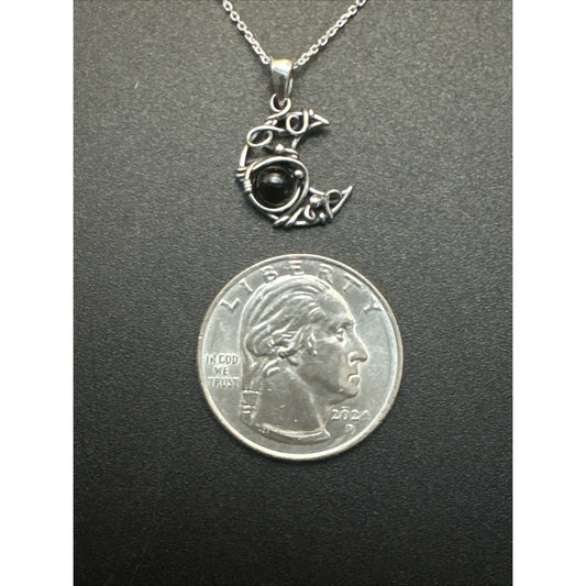18” New Condition Sterling Silver Onyx Crescent Moon Pendant Necklace
