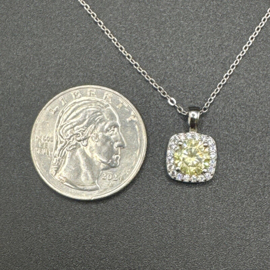 18” Sterling Silver Yellow CZ Pendant Necklace 925 N1
