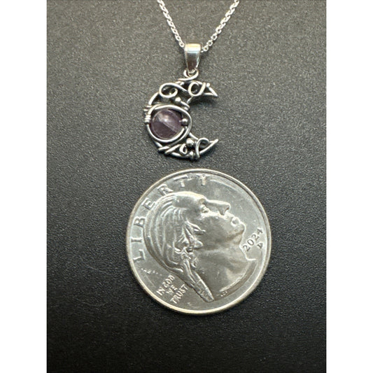 18” New Condition Sterling Silver Amethyst Crescent Moon Pendant Necklace
