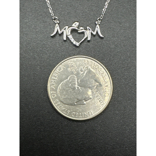 18” New Condition Sterling Silver CZ Mom Pendant Necklace 925