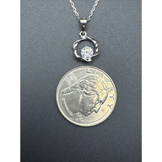 18” New Condition Sterling Silver CZ Solitaire Necklace Dainty