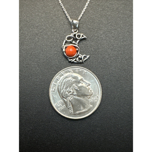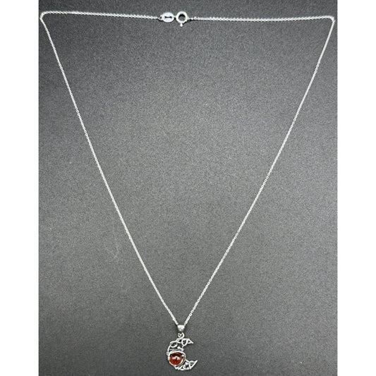 18” New Condition Sterling Silver Carnelian Crescent Moon Pendant Necklace