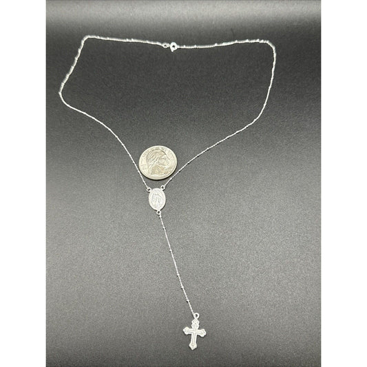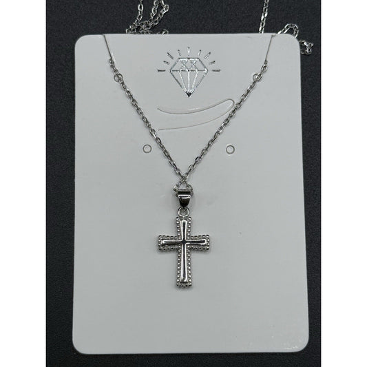 18” New Condition Sterling Silver Cross Bead Pendant Necklace 925