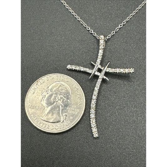18” New Condition Sterling Silver Modernist CZ Cross Pendant Necklace 925