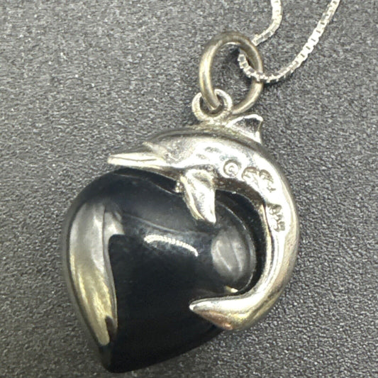 18” Sterling Silver Dolphin In Nyx Pendant Necklace 925 N1