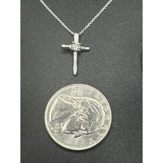 18” New Condition Sterling Silver Cz Cross Dainty Pendant Necklace