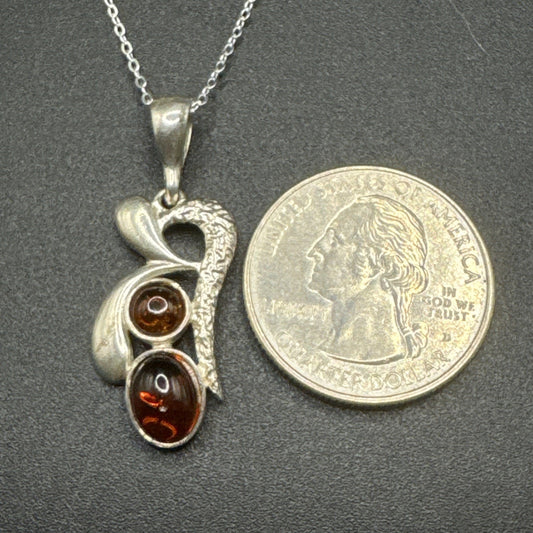 18” Sterling Silver Amber Symbol Character Pendant Necklace 3g 925 S15