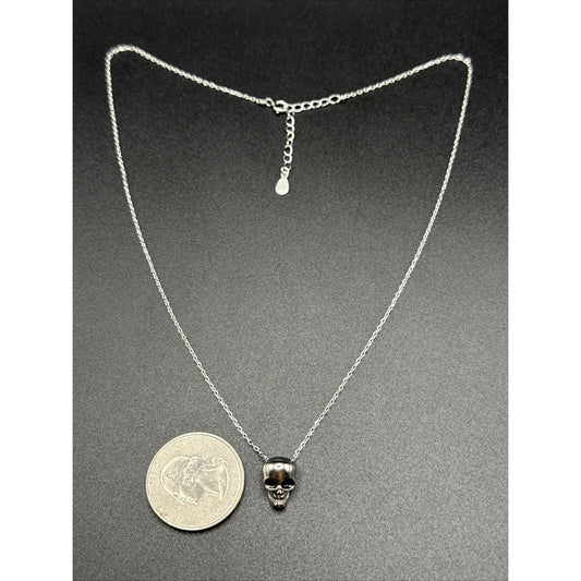 18” New Condition Sterling Silver Dainty Skull Pendant Necklace 925