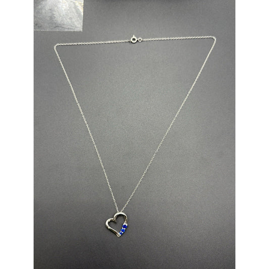 18" Sterling Silver Lab Sapphire Heart Pendant Necklace 925 W16