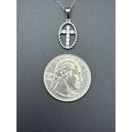 18” Sterling Silver Dainty CZ Cross Pendant Necklace 925 R9