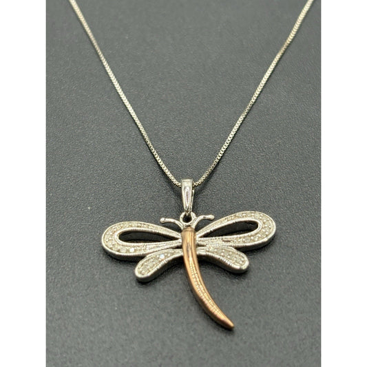 18" NewCondition SterlingSilver Rose Accent 1/10th Diamond Dragonfly Necklace