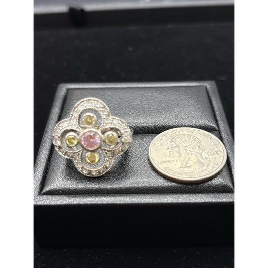 EUC Sterling Silver Multi Color Cubic Zirconia Ring Size 5.75 W29