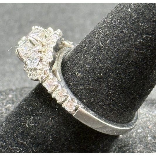 EUC Sterling Silver Cubic Zirconia 3-Stone Halo Ring Size 6.25 Q23