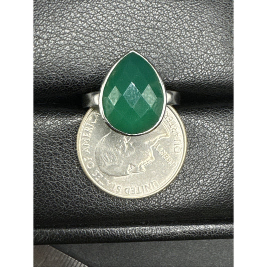 EUC Sterling Silver Green Chalcedony Pear Ring Size 9.75 U2