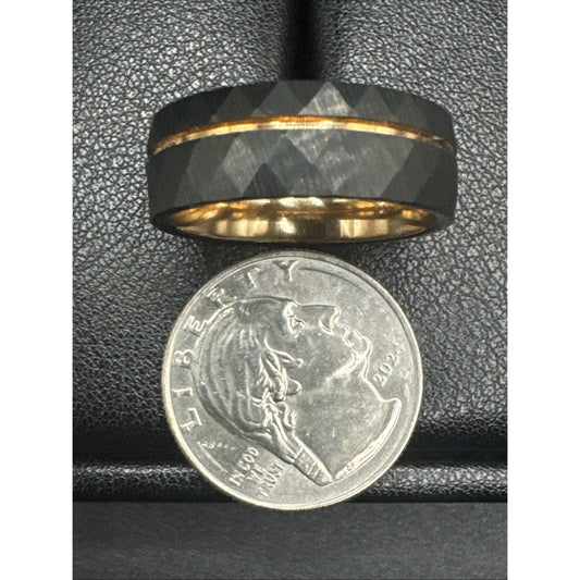 EUC Black Gold Tungsten Carbide Faceted Band Ring 925 Size 10 R9