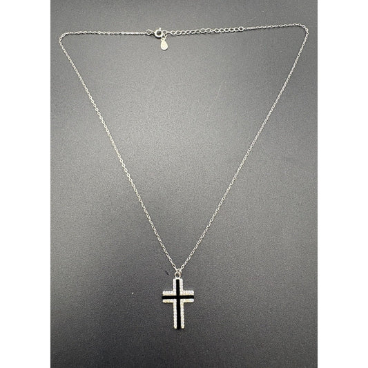 New Condition 18" Onyx Cubic Zirconia Cross Pendant Necklace