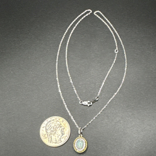 New Condition 18” Sterling Silver 14k Gold Plated Lab Opal Pendant Necklace 925