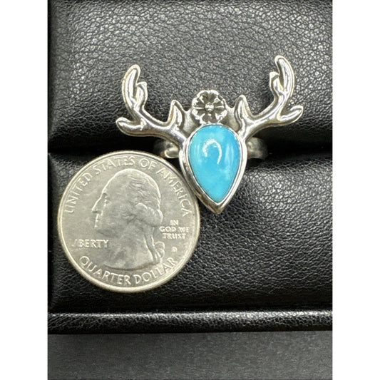 EUCSterling Silver Turquoise Antler Huntress Ring 7g 925 Size 7.25 T29