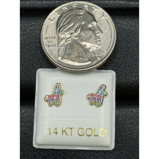 New Condition 14k Yellow Gold Piñata Enamel Stud Earrings