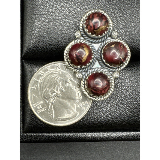 EUC Sterling Silver Red Dahlia Turquoise Long Ring 925 Size 7 T29