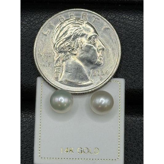 New Condition 14k Gold 6MM Genuine Pearl Stud Earrings