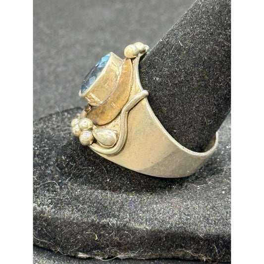 Modernist Sterling Silver Genuine Topaz Brass Accent Ring Size 8.25 Q23